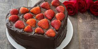 Mit einem schokoladenkuchen in herzform!